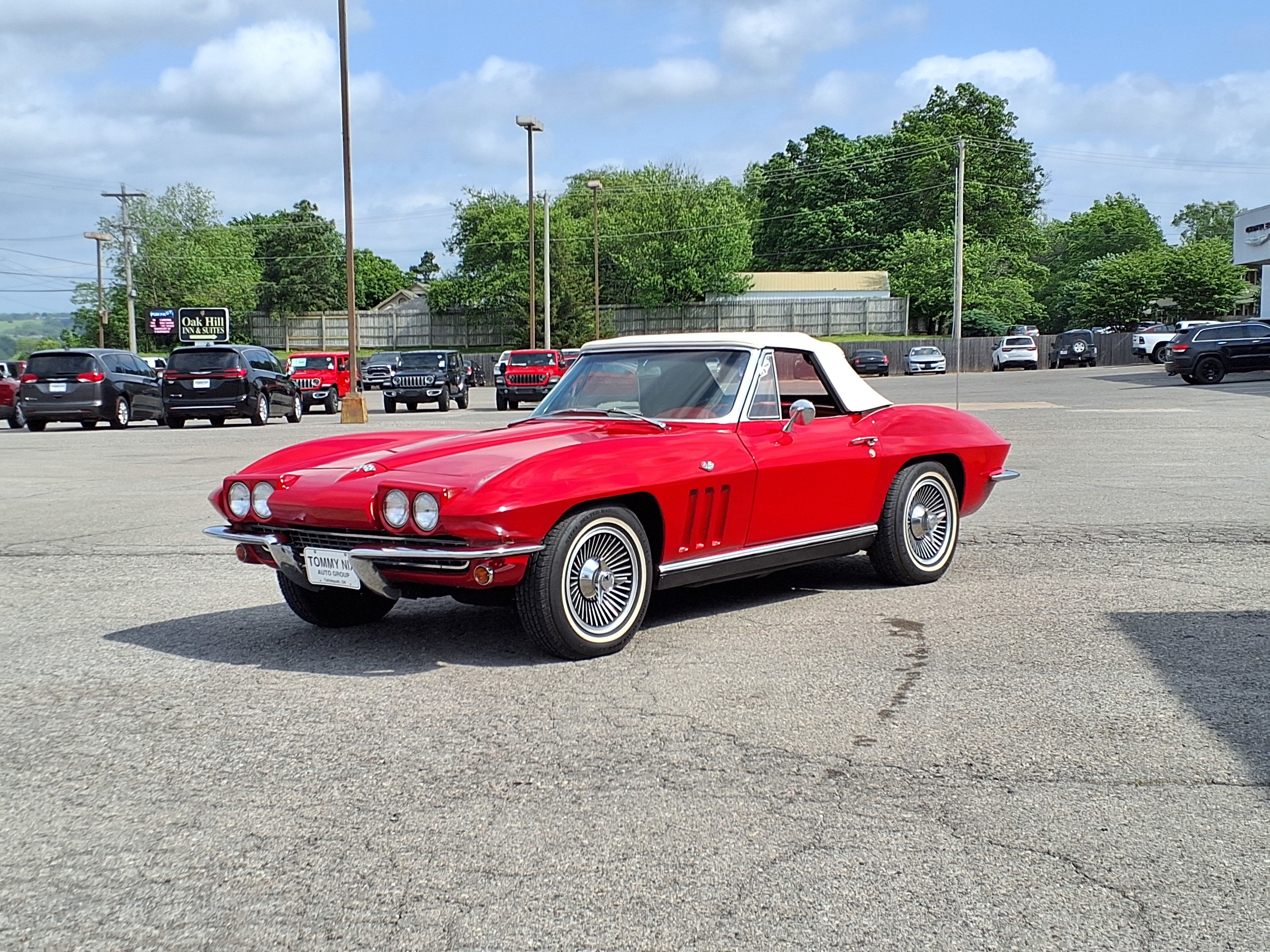 Check out Tommy Nix's Red 1965 CHEVROLET CORVETTE . Tommy Nix Auto Group is a local family owned and operated FULL-SERVICE Chevrolet, Chrysler, Dodge, Jeep, and Ram dealership in Tahlequah, OK. Tommy Nix is at the dealership almost daily, including Saturdays, to meet you and help in any way he can. Our Certified Staff is courteous, knowledgeable, and ready to help you with the car buying experience. We have an excellent Parts and Service Department open six (6) days a week with a full line of Certified Technicians. Our Finance Department can match almost any credit situation with the best finance sources available. Every new vehicle purchased will receive free oil changes for life and every pre-owned vehicle purchased will receive two free oil changes (excludes diesels and Corvettes). Service loaners are available for our customers. For additional information, please contact us at the following: Internet Sales (918) 456-2541, text message (918) 822.5499, or Service Department (918) 456-2541. Remember, if you cannot come to us, we will deliver your new vehicle to you. Paxton Nix says, My dad, Tommy Nix, WONT BE UNDERSOLD.